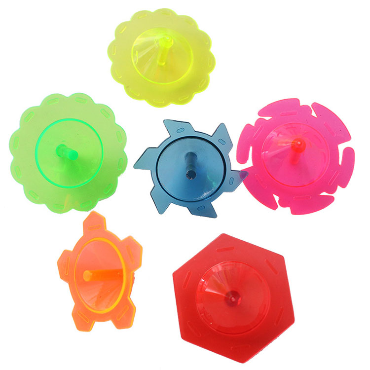 Spin Tops have always been popular with kids because they are simple and fun. This collection of mini tops is made of clear plastic and come in a variety of shapes and colors. Kids will love collecting them and sharing with friends.