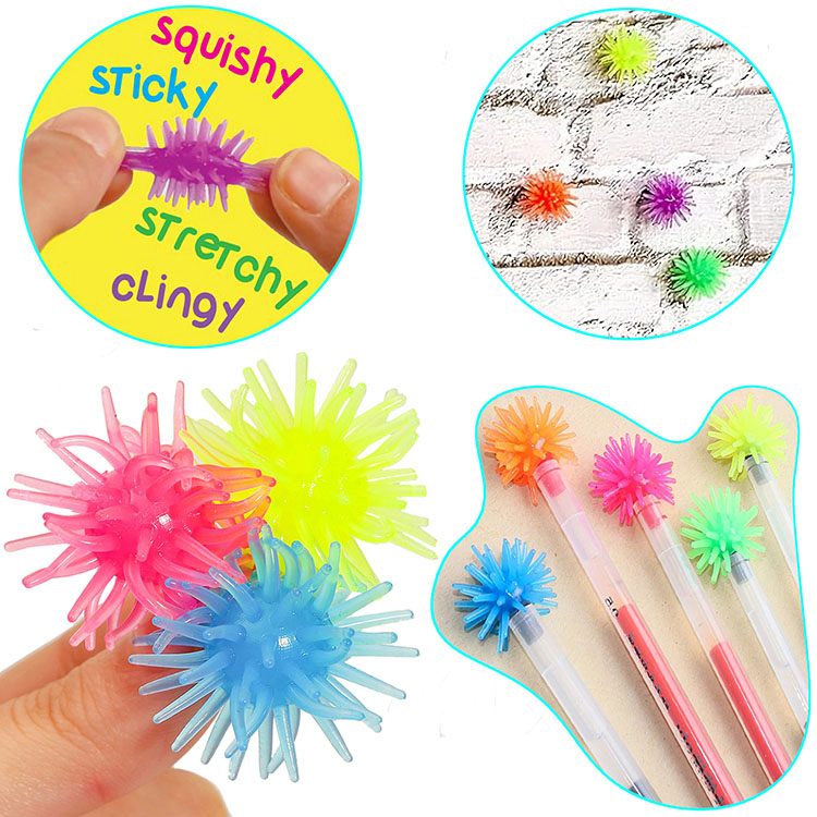 Besides the captivating bright colors, the soft rubbery spikes offer a therapeutic tactile experience.